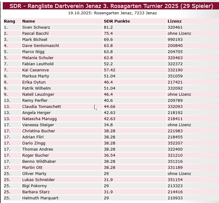3. Rosagarten Turnier 2025 (19.10.2025)