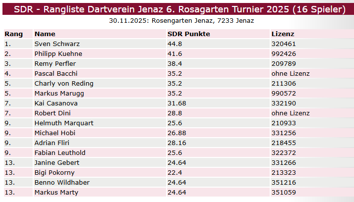6. Rosagarten Turnier 2025 (30.11.2025)